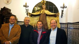 Previo al acontecimiento, el Domingo 11 de enero, D. Agustín López y D. Antonio González, presidente y vicepresidente del Carmen, se desplazaban hasta el Convento del Santo Ángel de los Padres Carmelitas Descalzos para reunirse con miembros de la Junta de Gobierno de la Archicofradía de Nuestra Señora del Carmen Coronada. A continuación, compartimos la imagen del día de la firma del contrato.