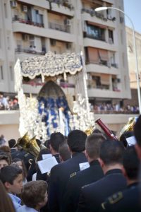 Con ellas la Virgen enfilaría ya la calle Resolana… siempre de frente… siempre elegante en su andar entre un mar de fieles que llevaban horas esperando su llegada… Aquí, Virgen de las Aguas serviría para la revirá hacia calle Feria.