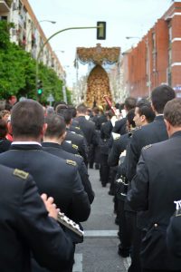 Y en cuanto a nuestra actuación tras la Madre de los Dolores, después de tres años sin disfrutarla, hemos de destacar el buen gusto que, en el plano musical está alcanzando ésta Hermandad. Mis Dolores Son Jesús, Dolores de Salteras, La Sangre y la Gloria, Reina de la Vera-Cruz, Amarguras, Rocío, Nuestro Padre Jesús, Dolores L Aniversario, Hosanna in Excelsis… son sólo algunas pinceladas de tan buen repertorio. Un repertorio que ganó aun más con el cambio de sentido en el recorrido.